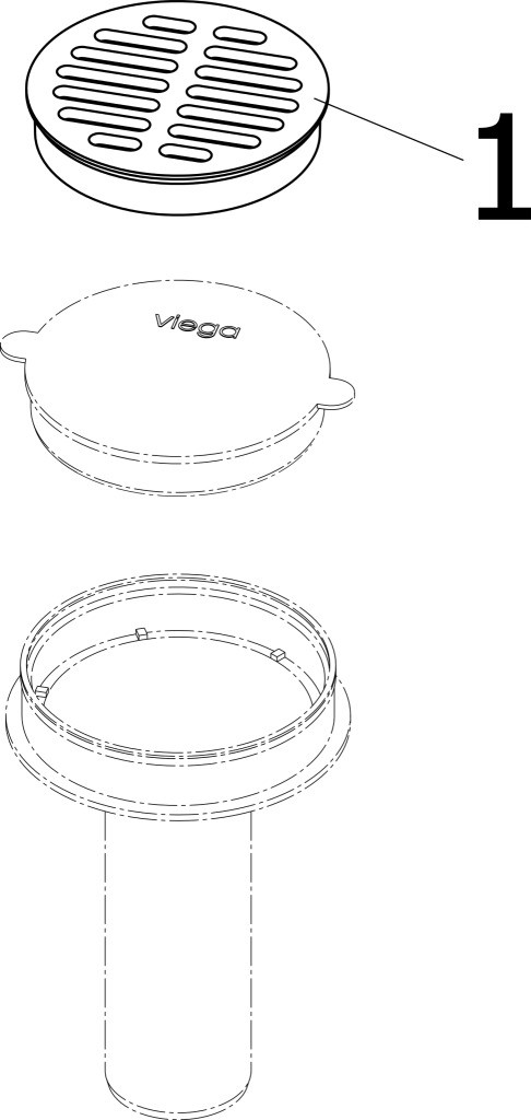 Systemmaß 100, ohne Abdichtungsflansch und Geruchverschluss, mit rundem Rost 100 mm Ø aus Kunststoff, mit Schutzstopfen, Ablaufleistung DN 50-2,5 l/s, Ablaufleistung DN 70-3 l/s, Belastbarkeitsklasse K=300 kg
