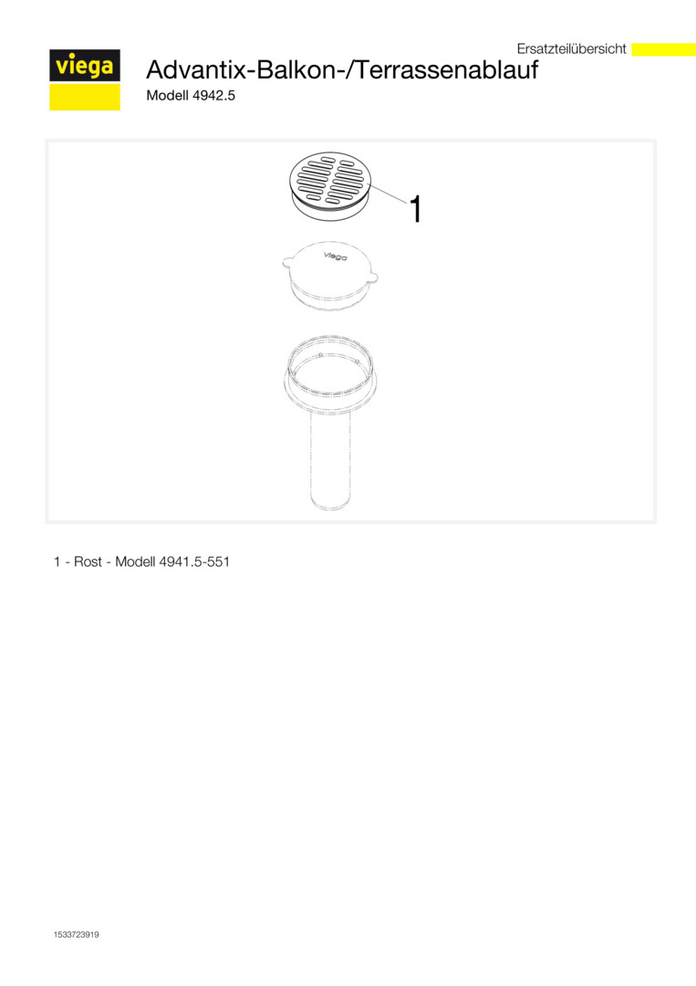 Viega Balkon-/Terrassenablauf Advantix 4942.5 DN 50, Kunststoff grau, Ablauf senkrecht, UV-beständig