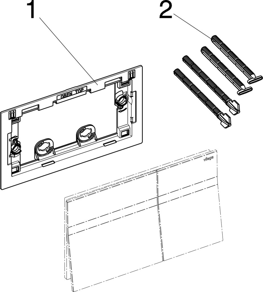 für UP-Spülkasten, mit Befestigungsrahmen, Betätigungsstifteset und Befestigungsbolzen, für alle Prevista-UP-Spülkästen, Metall, Glas, Holz, manuelle Spülauslösung von vorn und 2-Mengen-Spültechnik