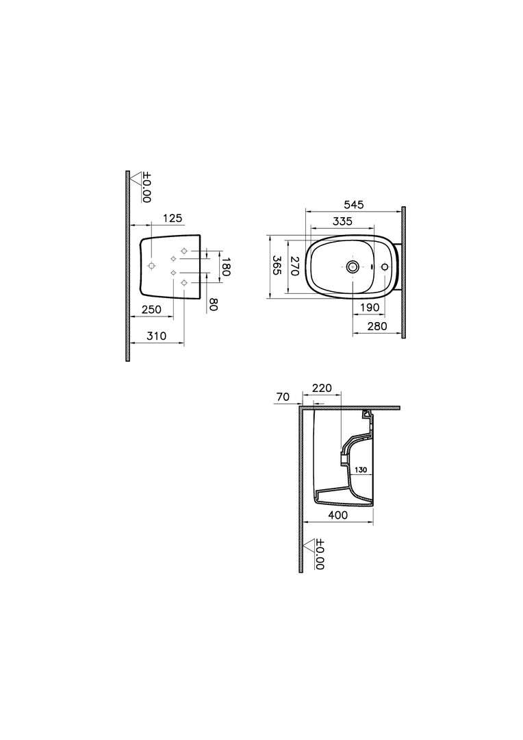 VitrA Bad Wand-Bidet Plural 36,5x54,5cm, mit Überlauf, 1 Hahnloch mittig, edelweiß, VC W58627