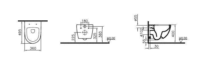 VitrA Bad Wand-Tiefspül-WC Sento Flush 2.0 Compact 36x49,5cm, 3/6 l, ohne Spülrand, weiß hochglanz W58526