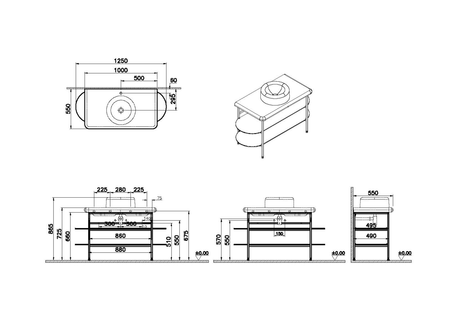VitrA Bad Waschtisch-Unterbau Liquid 125x49,5x66cm, mit Glasablage, Korpus schwarz matt/Glasablage blau
