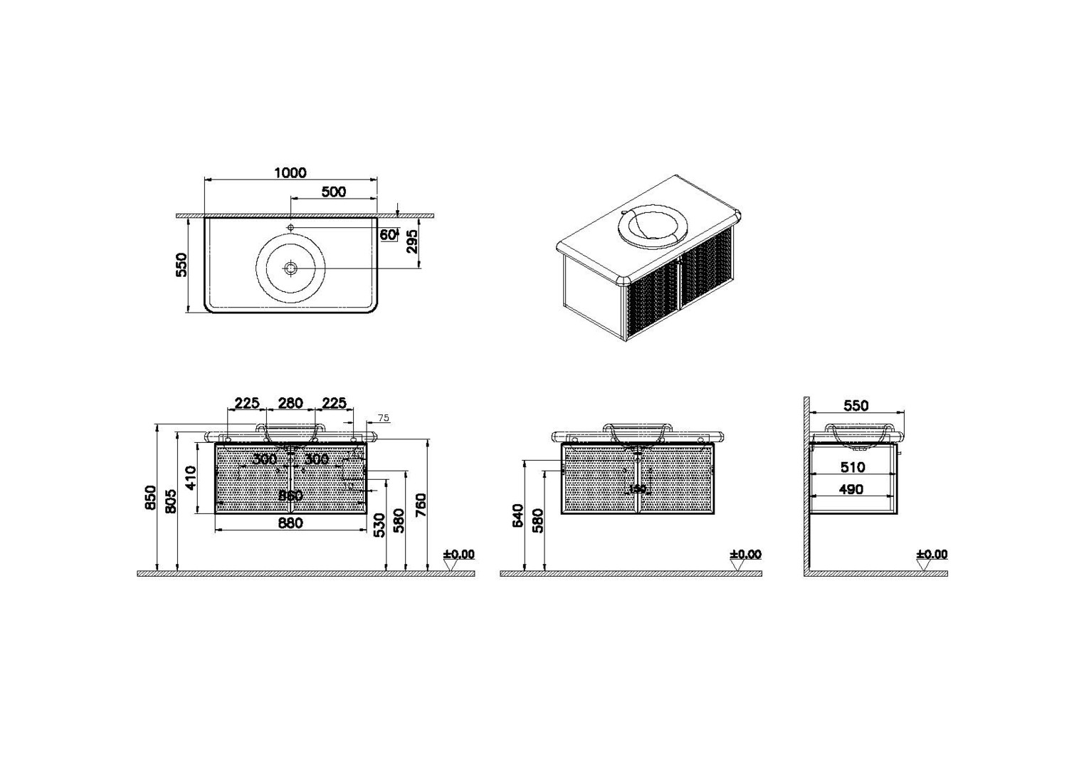 VitrA Bad Waschtisch-Unterschrank Liquid 88x51x41cm, Korpus schwarz matt/Front Metall perforiert schwarz matt