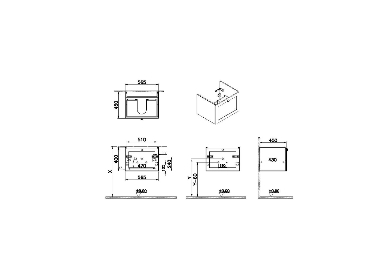 VitrA Bad Waschtisch-Unterschrank Root Classic 56,5x45x40cm, 1 Vollauszug, Korpus Graphit Matt W517901