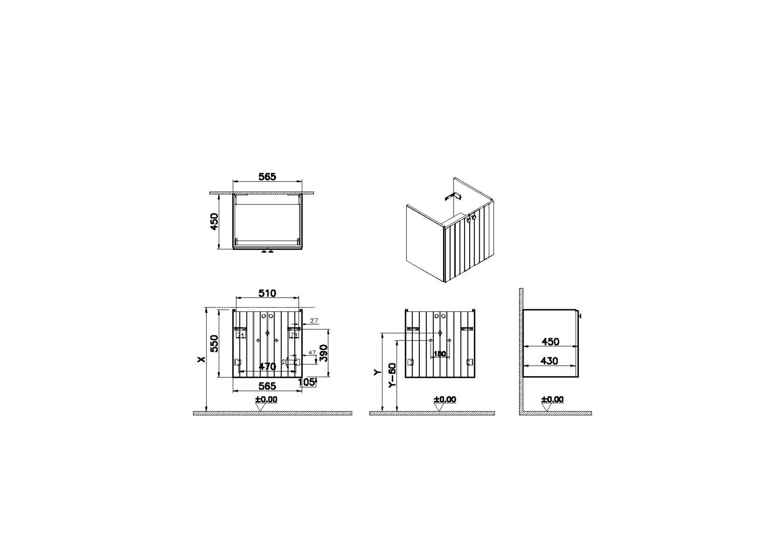 VitrA Bad Waschtisch-Unterschrank Root Groove 56,5x45x55cm, 2 Türen, Korpus Grau Matt W517713