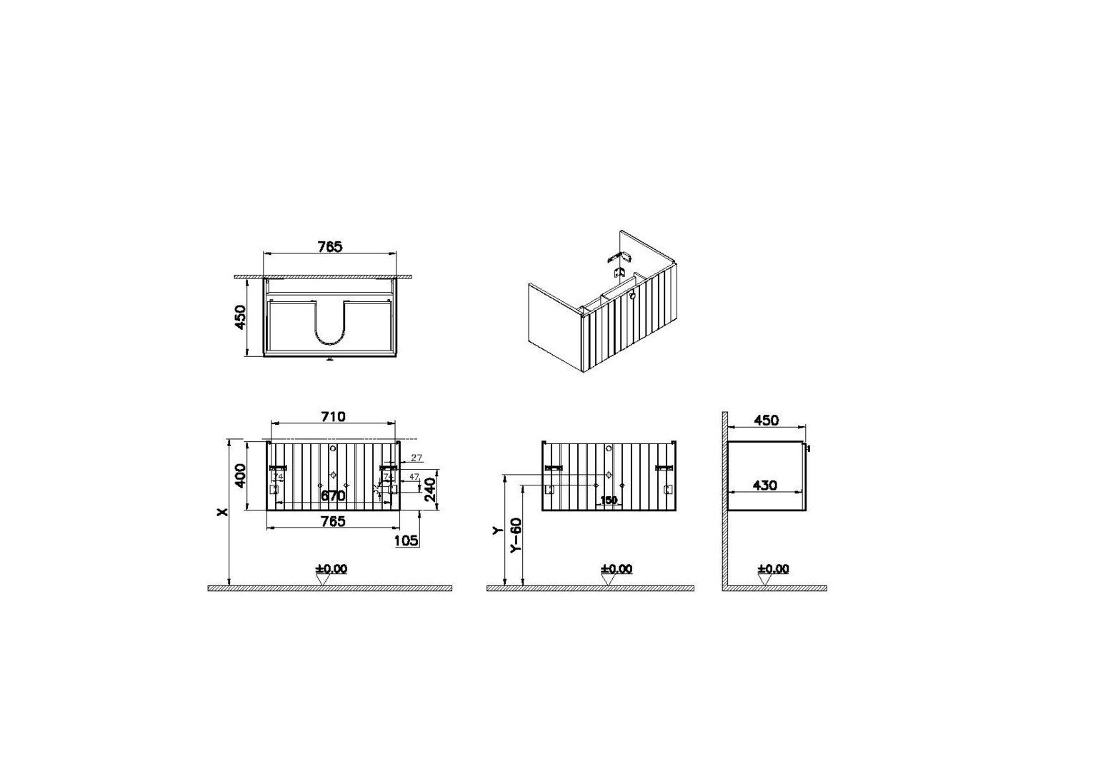 Korpus aus MDF + Thermofolie, runder Griffknauf in schwarz, wandhängend, Vollauszug Softclose mit Ausschnitt für Siphon