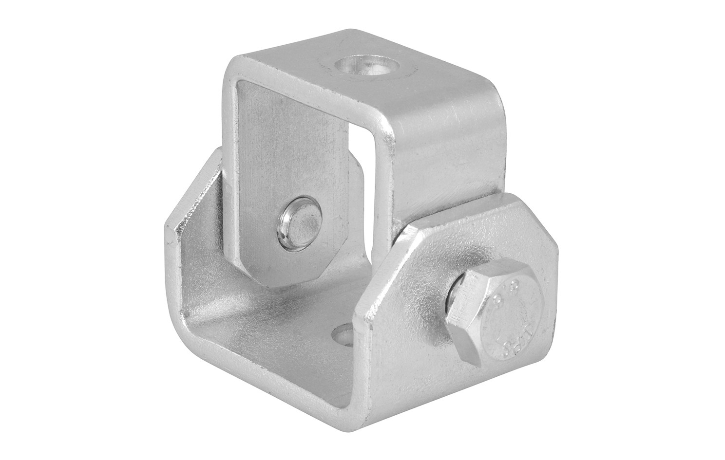 für Installationen mit Verstrebungen und Aussteifungen, zur Anbindung an Baukörper und Montageschienen, Winkel flexibel bis 90° einstellbar, mit 2 Durchgangslöchern 13 mm, Oberflächenbeschichtung Ultra Protect 1000 Systemtechnologie, ein System für Installationen im Innen- und Außenbereich, besteht min. 1000 Stunden Salzsprühtest gem. DIN EN ISO 9227