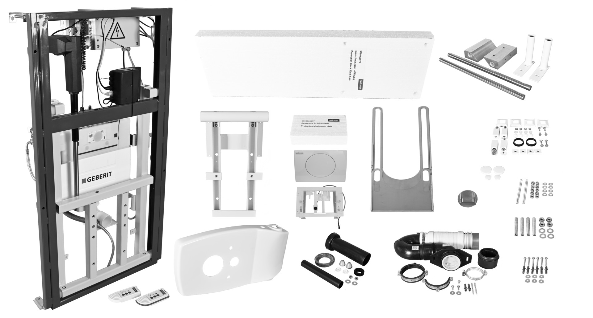 Walraven VARIO WC-Element Care 30 30cm elektrisch höhenverstellbar, mit Armstützen, Ablauf waagerecht W356376
