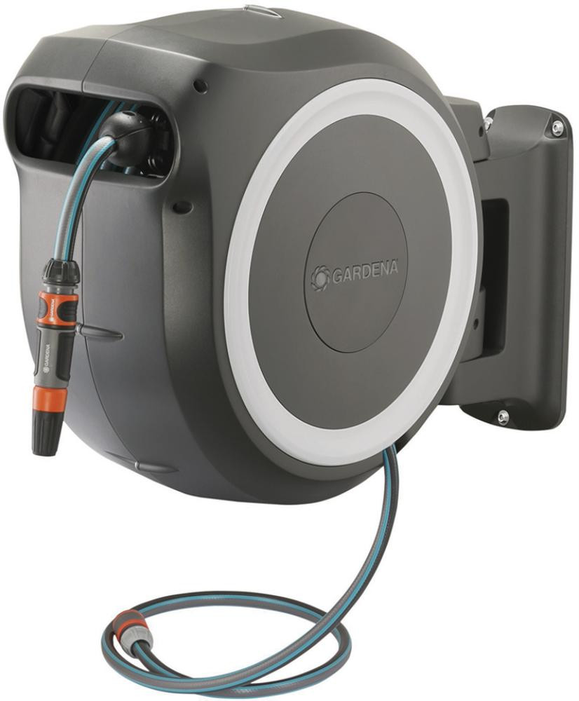 • Inhalt: Qualitätsschlauch, flexiblem Anschlussschlauch, Original GARDENA Systemteilen und Spritze. Inklusive Wandhalterung mit Schrauben, Dübeln und Montagehilfe. Mit Diebstahlsicherung