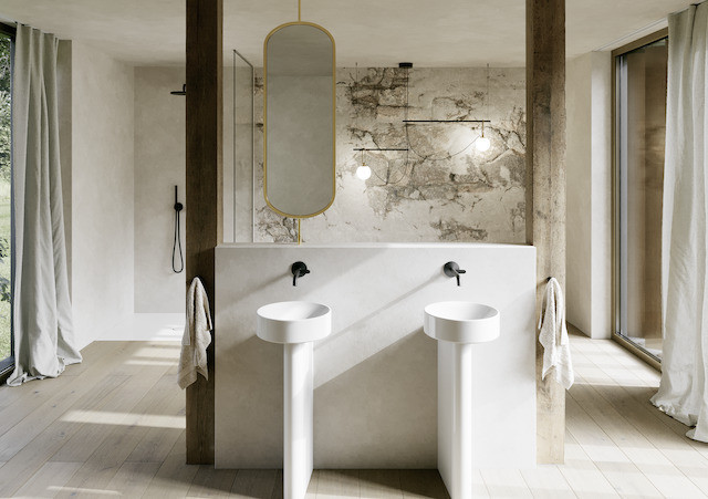 Waschtisch Pedestal BetteSuno d= 34x86,3cm, mit Hahnloch, raven W40890