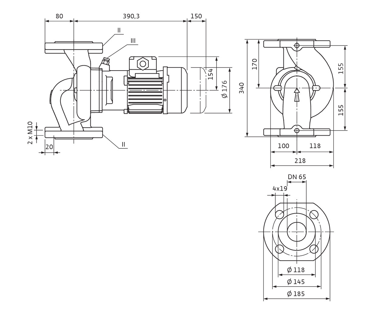 | Nenndurchmesser Anschluss Auslassseite | DN 65 |