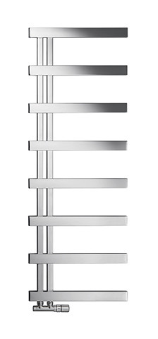 aus horizontal angeordneten Vierkantrohren und vertikalen Sammelrohren, Vierkantrohre 50 x 30 mm, Sammelrohre 30 x 30 mm, Wärmeleistungen nach EN 442, Anschluss 4x 1/2" Innengewinde an den Sammelrohrenden, wahlweise Montage als rechte oder linke Ausführung möglich (Vorlauf/Rücklauf unten wahlweise links oder rechts), Abstand 50 mm, oben 2x 1/2" Entlüftungsventil, werkseits eingedreht für Montage als Ausführung rechts, Lieferung montagefertig mit Wandkonsolen in chrom, Betriebsüberdruck, einlagige Modelle max. 5,2 bar, Betriebstemperatur max. 90 °C, Warmwasserbetrieb