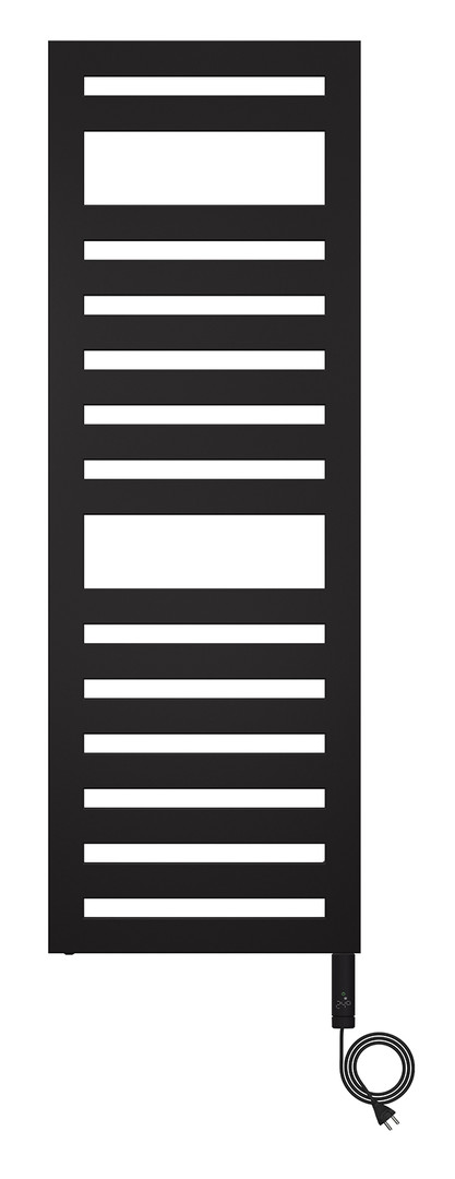 rein elektrisch, für Einsatz als Bad- und Handtuchheizkörper, flächig wirkender Heizkörper mit eingelassenen Schlitzen bestehend aus horizontal angeordneten Flachrohren 70 x 8 mm, die mit einem umlaufenden Dreikantprofilrahmen ohne sichtbare Schweisstellen verbunden sind, mit höhenabhängig einer oder mehreren Öffnungen zur Handtuchaufnahme, gefüllt mit Wärmeträgerflüssigkeit, für Netzanschluss 230 V, mit Anschlusskabel 1,2 m lang mit Stecker, Trockenlaufschutz gegen Betrieb ohne ausreichende Wärmeträgerflüssigkeit, Standardausführung mit Pulverlackierung im Farbton RAL 9016, auf Wunsch in Sonderfarbe, Lieferung montagefertig mit Wandkonsolen, Elektrobetrieb mit Heizstab IHC: mit integrierter Steuerung und modularem Bedienkonzept, Basisfunktionen direkt am Heizstab einstellbar, für noch einfachere und bequemere Bedienung kann das als Zubehör bestellbare Steuergerät Easy oder die App Zehnder Connect genutzt werden, Steuereinheit je nach Heizkorperfarbe in weiß, grau oder schwarz, eingebaut im rechten Sammelrohr, Anschlusskabel mit Konturenstecker in Farbe der Steuereinheit, Schutzart IP 54