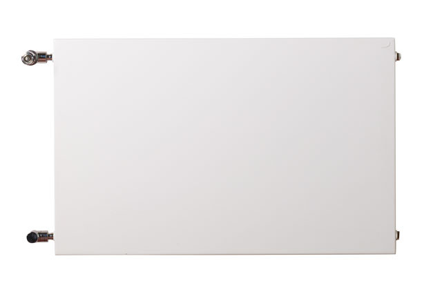RAL 9016, als Flachheizkörper in horizontaler Ausführung, die Front plan geschliffen aus Stahlblech 2 mm und geschlossen, Rückseite profiliert aus Stahlblech 1,25 mm, mit integriertem Ventil seitlich oder in der Front, stabiler Befestigung, hygienisch und leicht zu reinigenden Oberflächen, ohne Lamellen, für die Installation in Gesundheitseinrichungen geeignet, Heizkörper entspricht den Richtlinien der Gesetzlichen Unfallversicherer (GUV), Betriebsüberdruck max. 6 bar, Betriebstemperatur max. 110 °C, Grundierung und Pulverbeschichtung nach DIN 55900, Wärmeleistung geprüft nach EN 442, mit CE-Kennzeichen, Gitterabdeckung, angeschweißte Fußkonsolen, Hochdruck-Ausführung bis max. 10 bar, Starkwandig, Integrationsvarianten für das Ventil, lackiert in Glattlack matt, seitlich integrierter Ventilkörper AV6, Anschluss 2x 1/2" nach unten, 1x 1/2" Entlüftungsventil, mit rückseitig angeschweißten Aufhängelaschen, Verpackung in Folie mit stabilem Kantenschutz