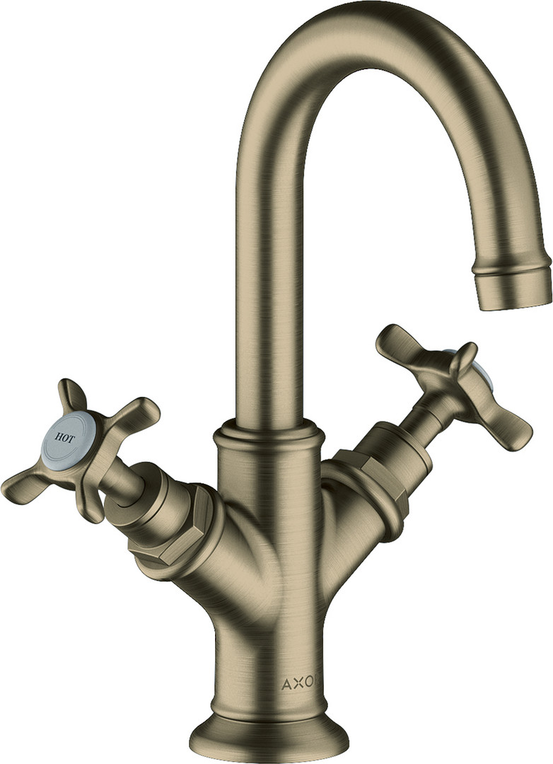 hansgrohe 2-Griff-Waschtischarmatur 160 Axor Montreux mit Kreuzgriffen, Zugstangen-Ablaufgarnitur, für Handwaschbecken, brushed nickel