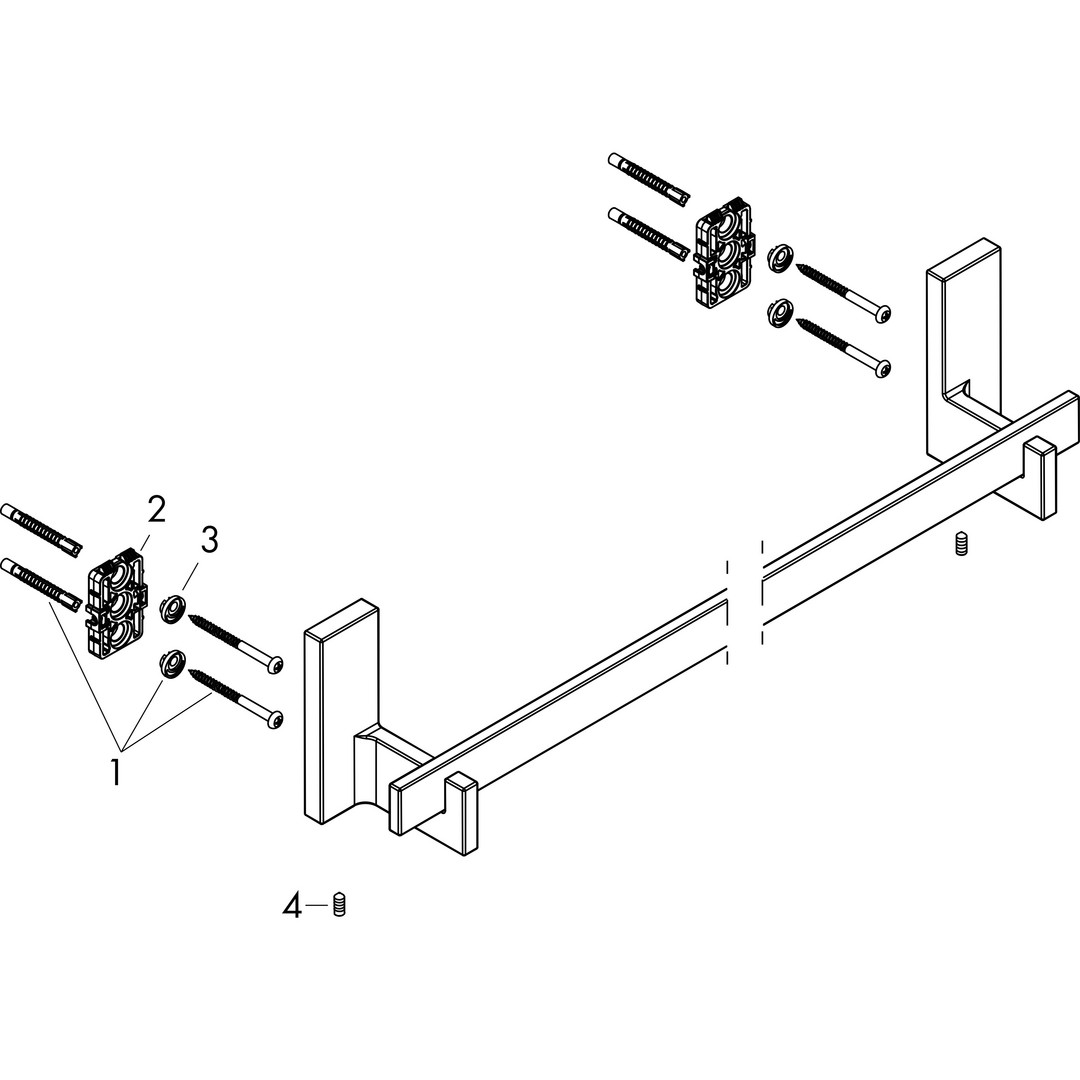 Wandmontage, Material Metall, mit Befestigungsmaterial, Gesamtlänge 640/840 mm, Bohrabstand 600/800 mm, Durchmesser Bohrloch 6 mm