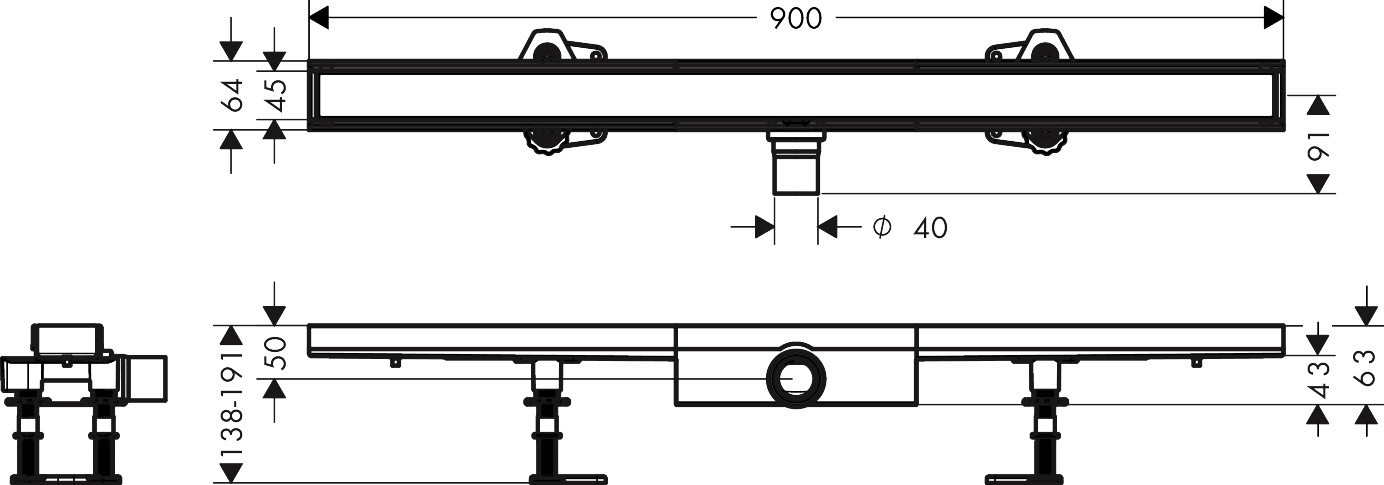 hansgrohe Duschrinne RainDrain Compact 900 mm, Komplettset, befliesbar, für flache Installation, chrom W344673