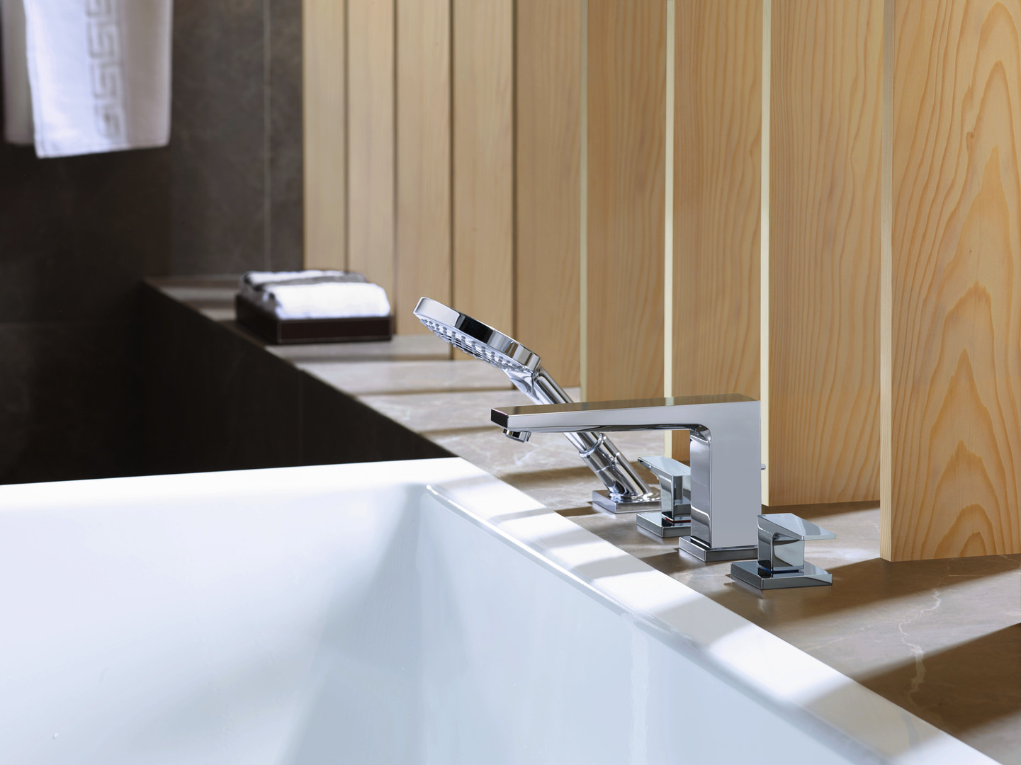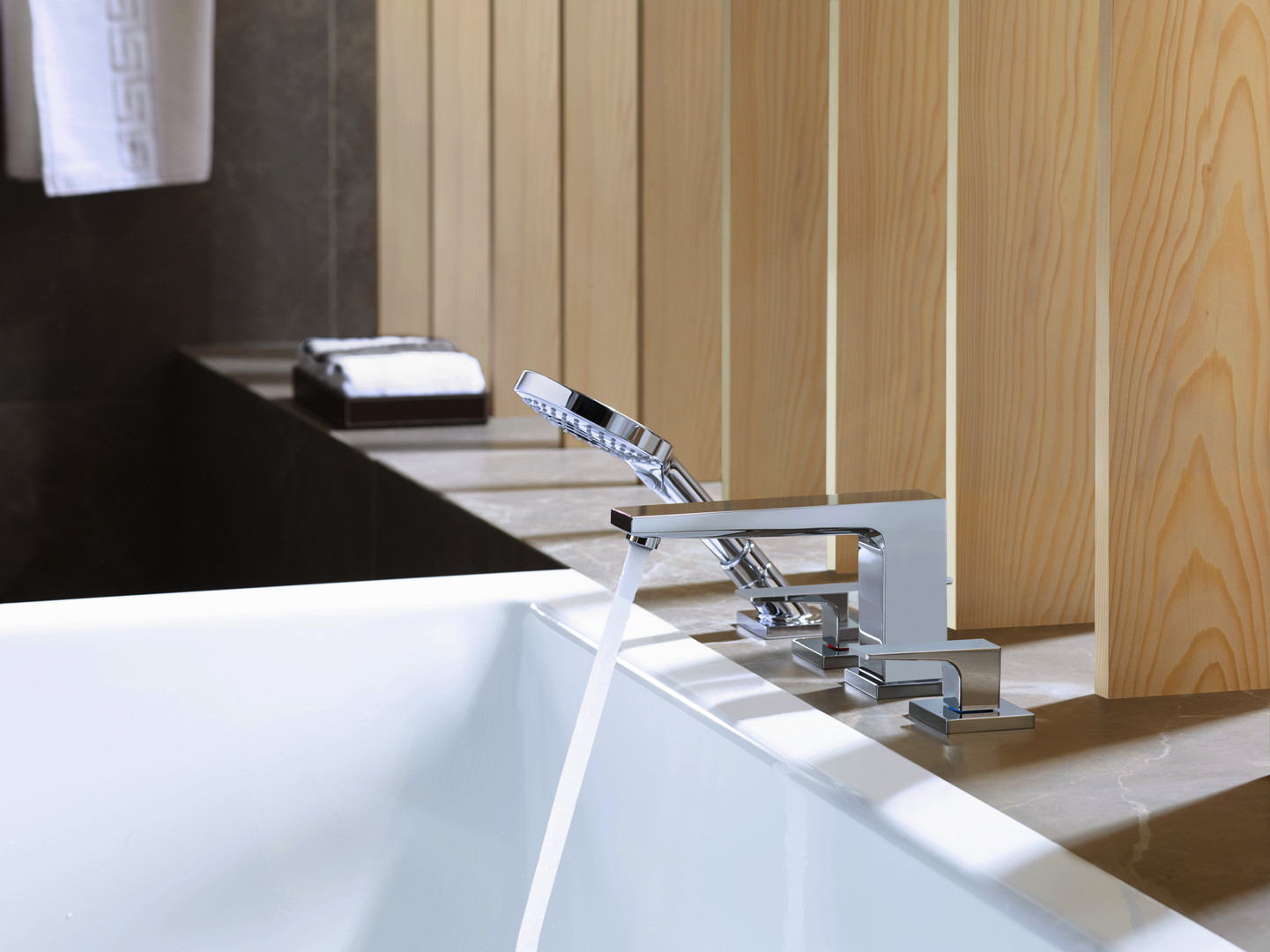 für Secuflex, bestehend aus 4-Loch Einhebel-Wannenrandmischer, Handbrause, Brausehalter, 2 Verbraucher, Anschlussart Grundkörper, Strahlart Armatur Normalstrahl, Strahlart Handbrause Rain, RainAir, Whirl, max. Ausziehlänge Handbrause 110 cm, max. Durchflussmenge bei 3 bar 24 l/min, Durchfluss für Handbrause bei 3 bar 15 l/min, Durchfluss für Wanneneinlauf bei 3 bar 24 l/min, Betriebsdruck min. 1/max. 10 bar, Keramikventile heiß/kalt 90°, Anschlussgröße DN15, Air Power Technologie, Quick Clean Antikalksystem