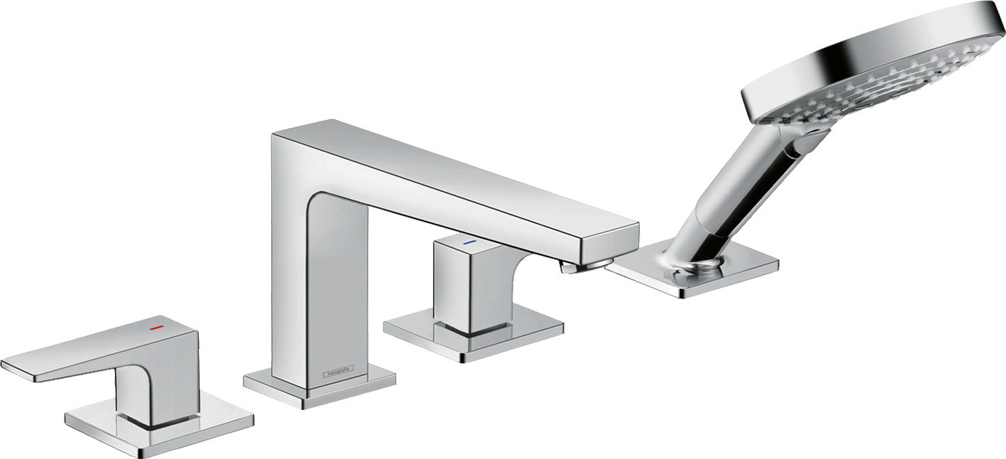 hansgrohe Fertigmontageset Metropol 4-Loch-Wannenrand-Einhebelmischer, mit Hebelgriff, Ausladung 197mm, chrom