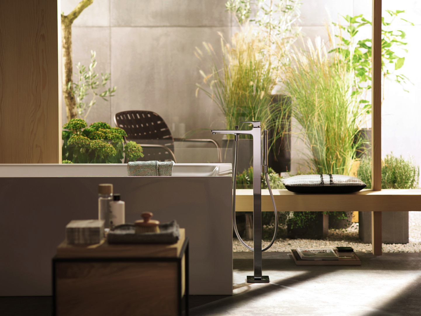 hansgrohe Fertigmontageset Metropol Wannen-Einhebelmischer, bodenstehend, mit Hebelgriff, Ausladung 235mm, chrom