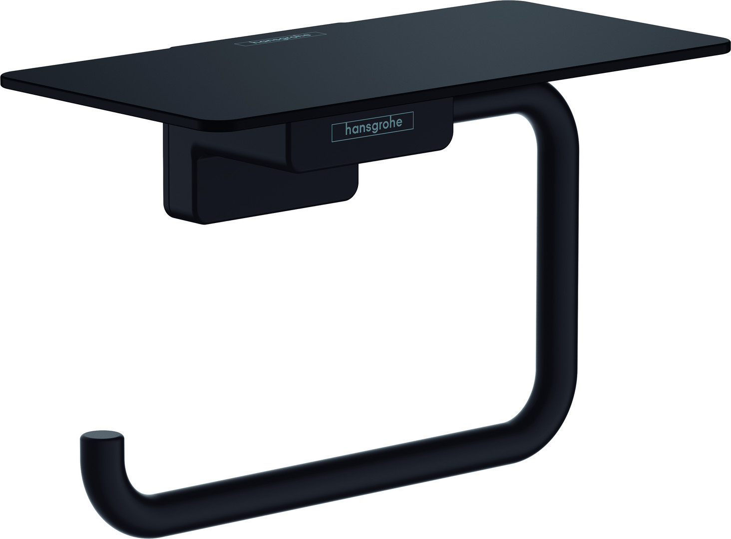 hansgrohe Papierrollenhalter AddStoris mit Ablage, mattschwarz, Wandmontage, Metall