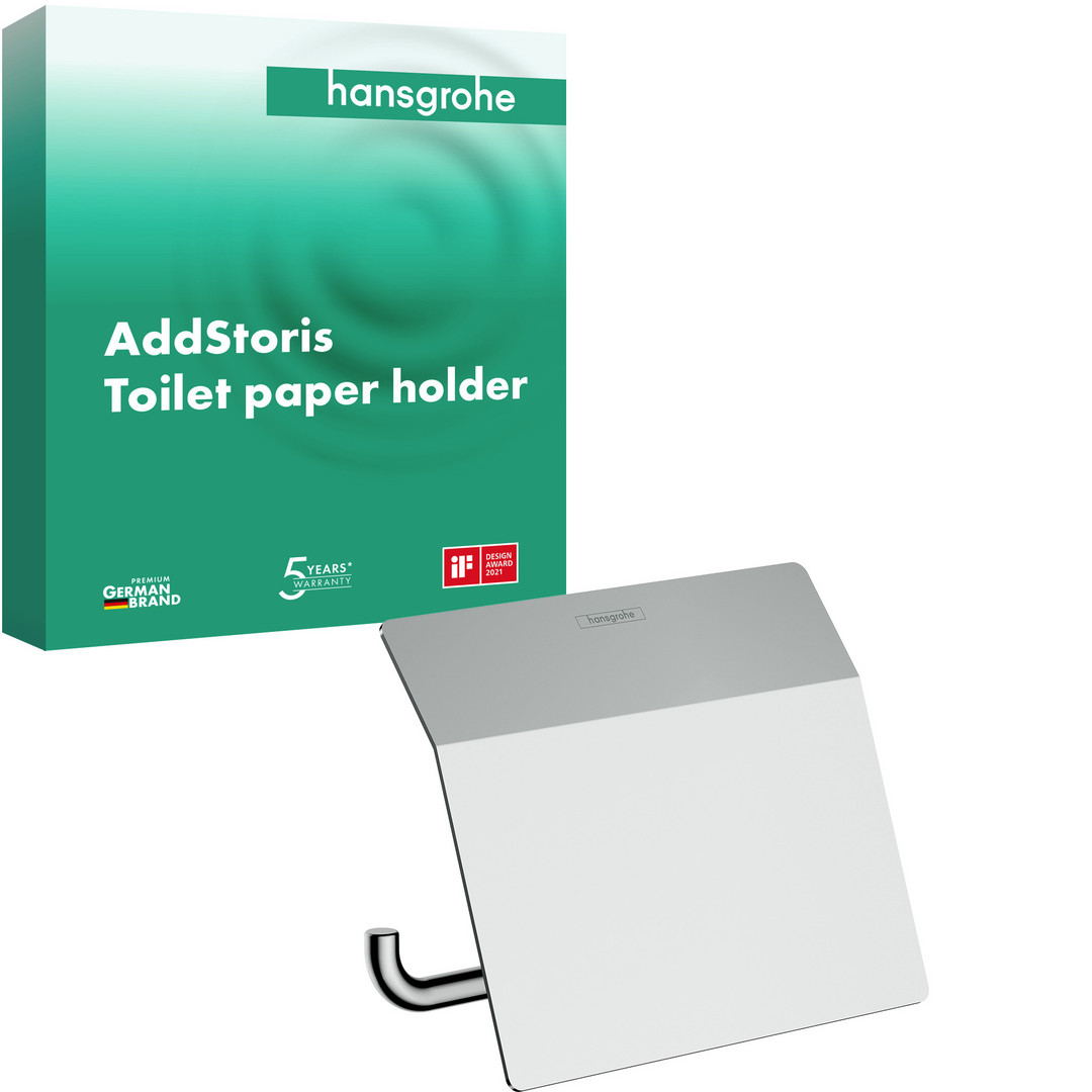 hansgrohe Papierrollenhalter AddStoris mit Deckel, chrom, Wandmontage, Metall