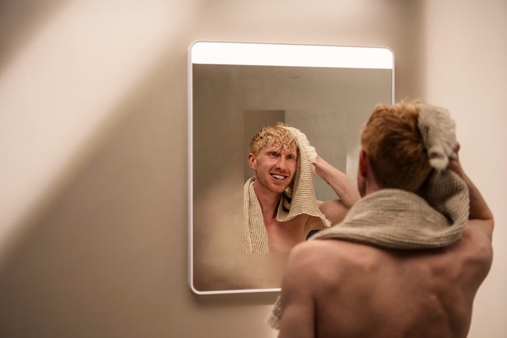 hansgrohe Spiegel Xarita Lite Q horizontaler LED-Beleuchtung, IR Sensor, B 600 x H 700 x T 30 mm, 6 W, mattweiß