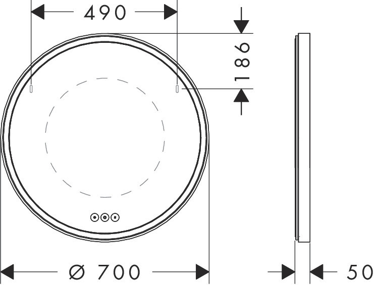 hansgrohe Spiegel Xarita S mit kapazitiven Berührungssensor, 700 x 700 x 50 mm, mattweiß W358470