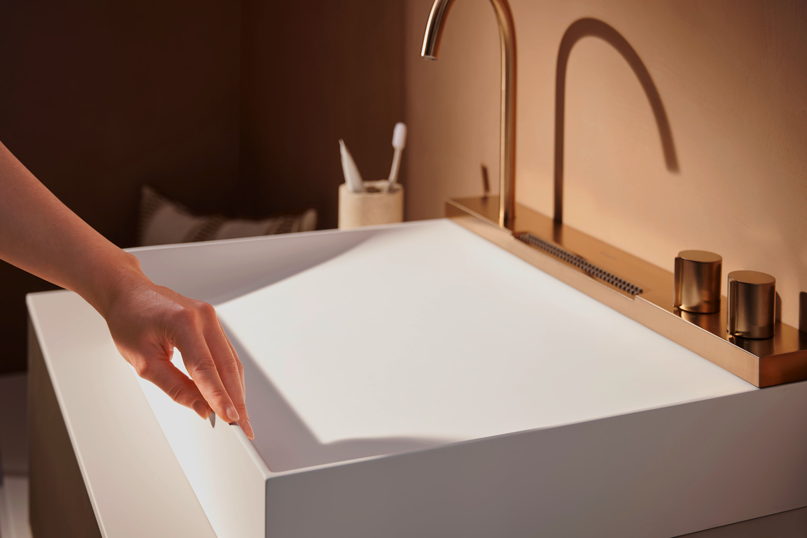 hansgrohe Spiegel Xarita S mit kapazitiven Berührungssensor, 900 x 900 x 50 mm, mattweiß