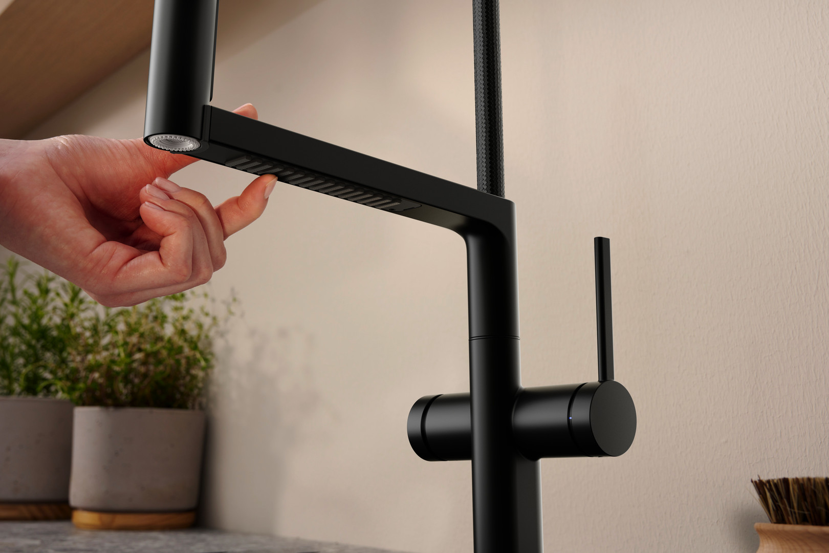ComfortZone 210, Schwenkbereich einstellbar in 4 Stufen auf 60°, 110°, 150° oder 360°, PowderSpray, Brausestrahl, Laminarstrahl, Schwenkarm unabhängig bewegbar von dem Schlauch, vorderer Brausestrahl arretierbar, Strahlumstellung durch Tastendruck und Strahlrückstellung automatisch durch Schließen der Armatur, Select-Knopf zur komfortablen Umstellung von PowderSpray auf die vordere Brause, MagFit magnetische Brausehalterung, maximale Durchflussmenge bei 3 bar 5,6 l/min, Keramikmischsystem, Temperaturbegrenzung einstellbar, Rückflussverhinderer integriert, für Durchlauferhitzer geeignet, Hahnlochbohrung mit 35 mm erforderlich, Movaflex Schlauch ist flexibel schwenkbar (360°), Textilschlauch mit Umflechtung, die Garne sind aus recyceltem PET hergestellt, warmes, baumwollähnliches Material