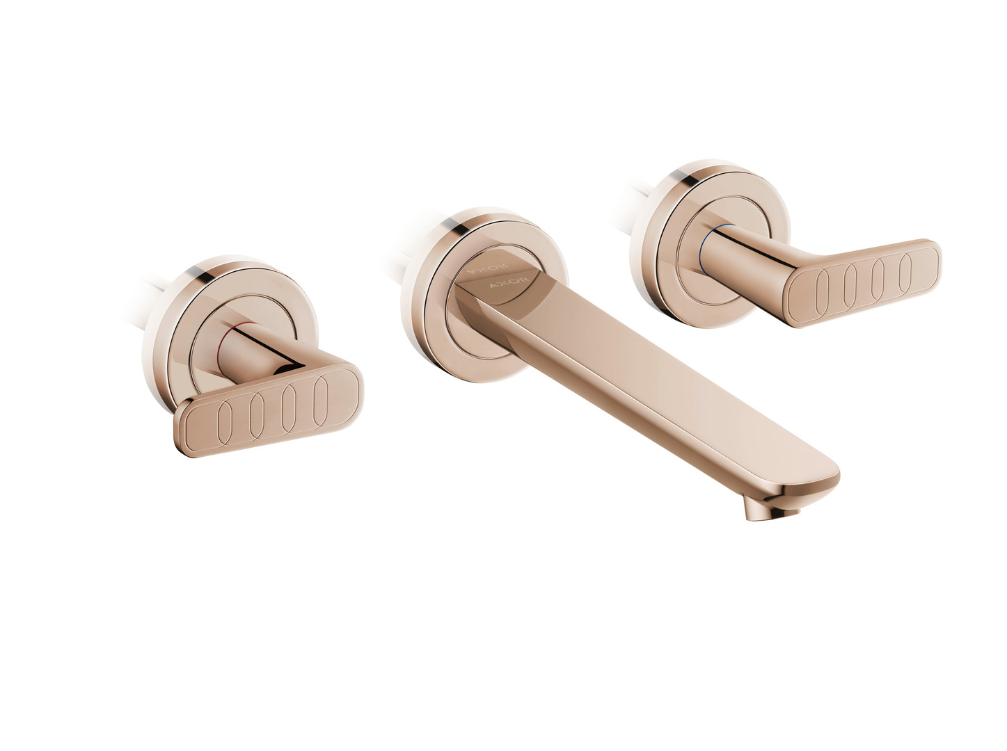 hansgrohe Waschtisch-3-Loch-Armatur Axor Citterio C cubic cut, polished red gold, UP Wandmontage, Ausladung 193mm