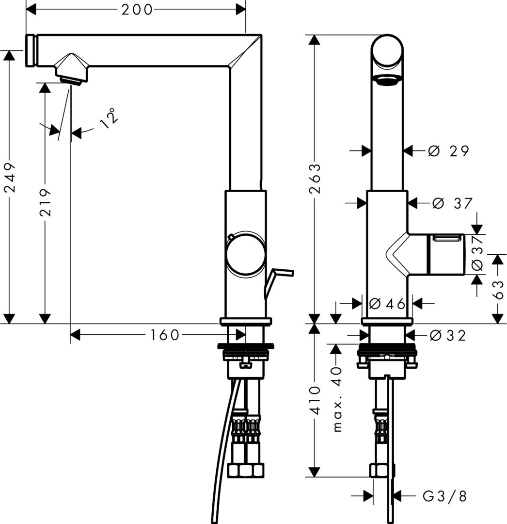 Aufbauhöhe Unterkante Hahnauslass 220 mm