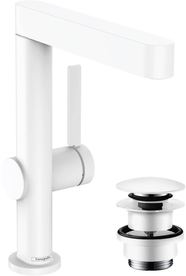 hansgrohe Waschtisch-Einhebelmischer 230 Finoris mit Schwenkauslauf, Push-Open-Ablaufgarnitur, mattweiß