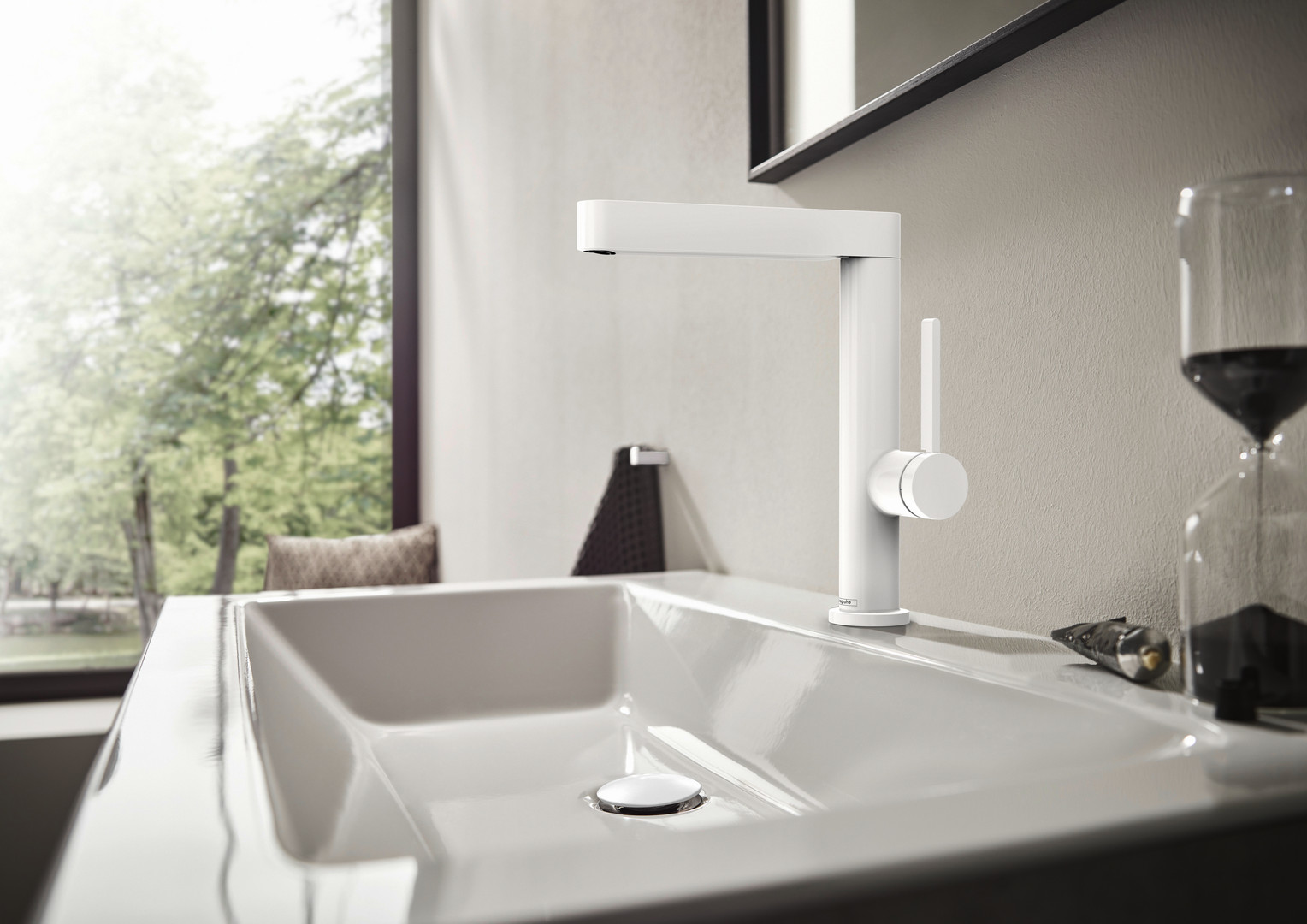 hansgrohe Waschtisch-Einhebelmischer 230 Finoris mit Schwenkauslauf, Push-Open-Ablaufgarnitur, mattweiß W301583