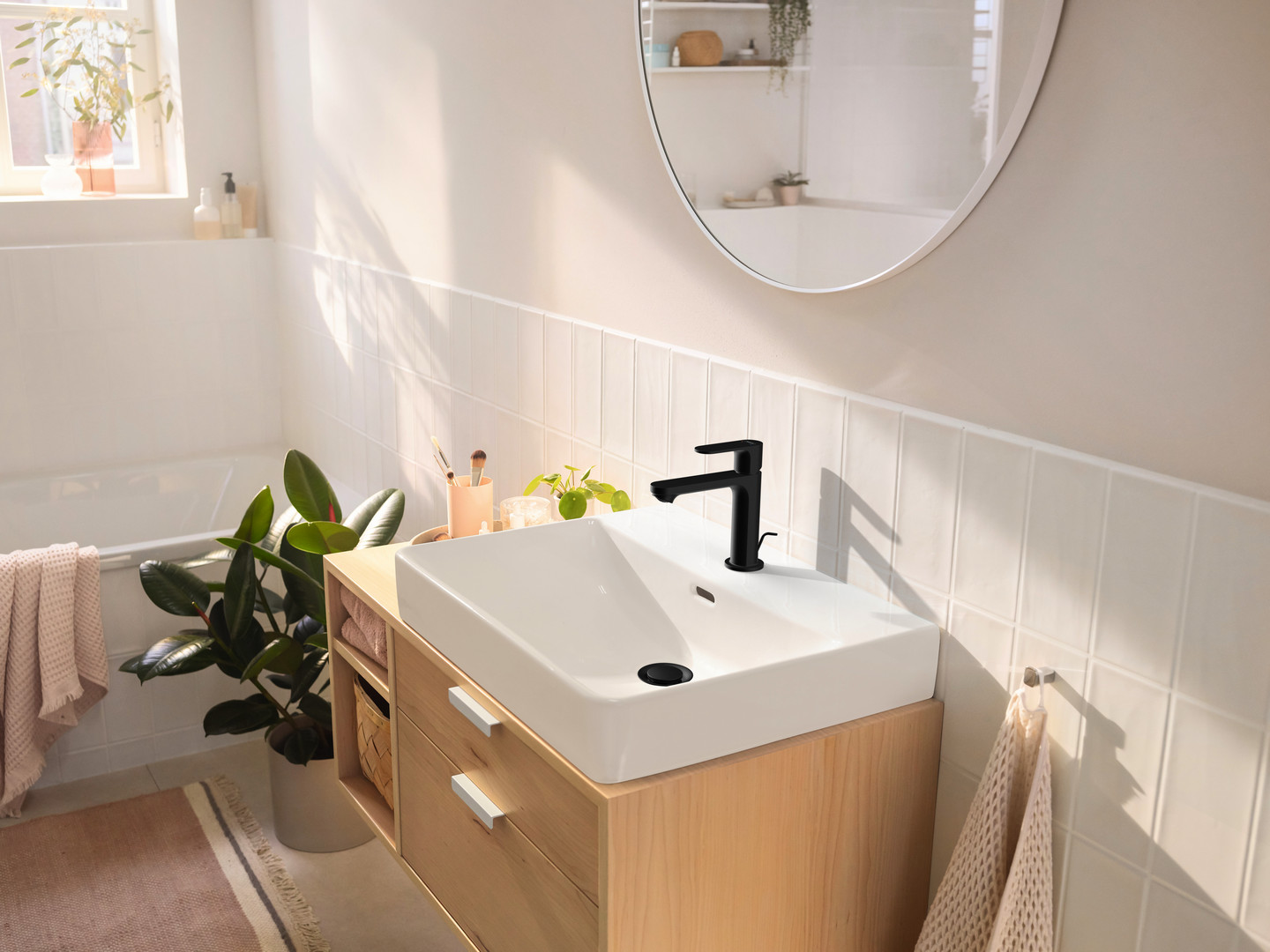 FORMAT Design 2.0 Waschtisch-Einhebelmischer 110, schwarz matt, mit Ablaufgarnitur 256724