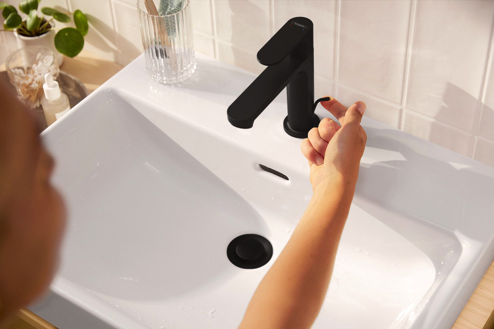 hansgrohe Waschtisch-Einhebelmischer Rebris S 110 mit Zugstangen-Ablaufgarnitur, mattschwarz