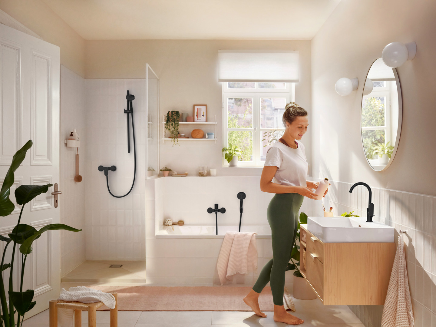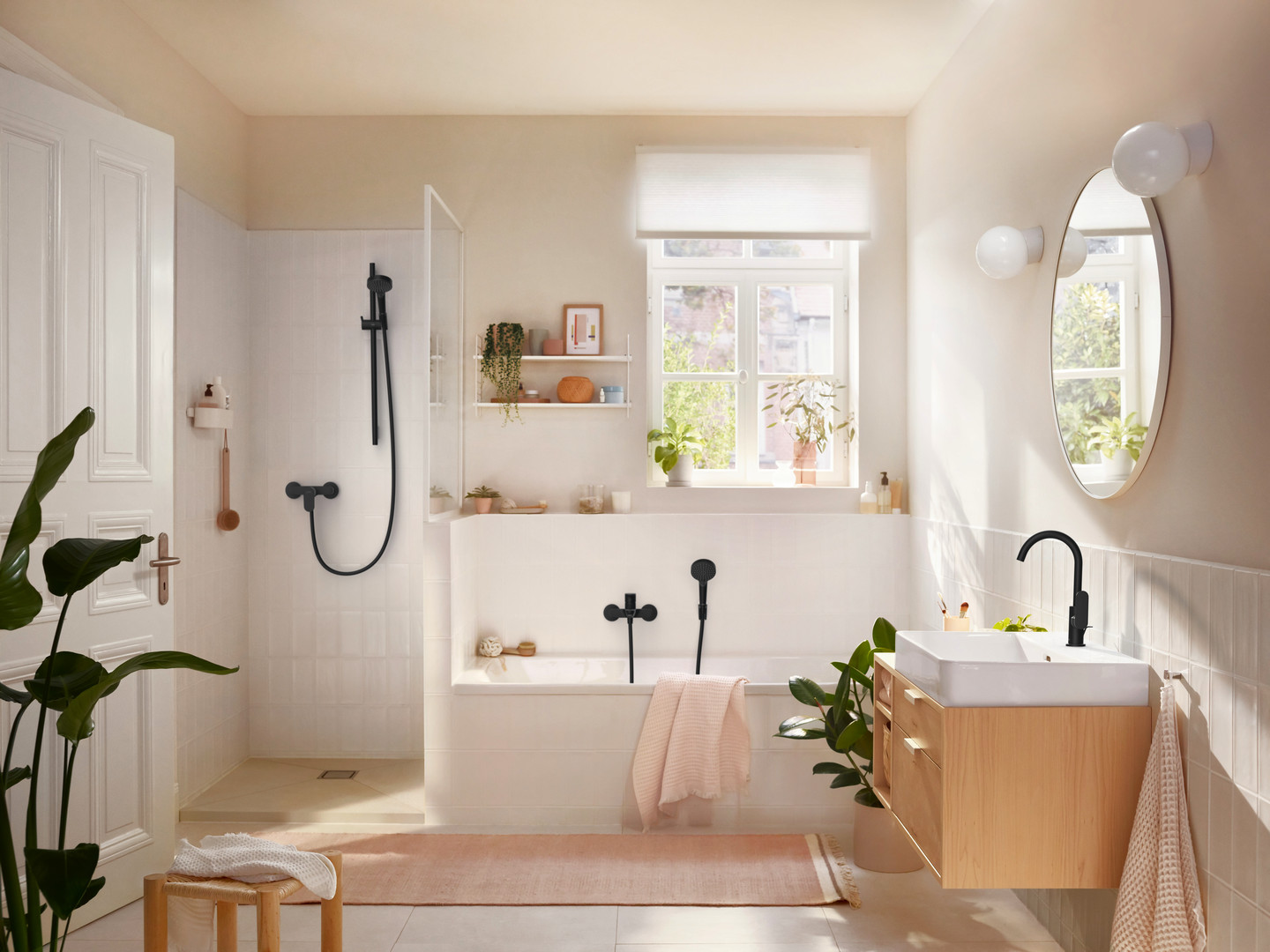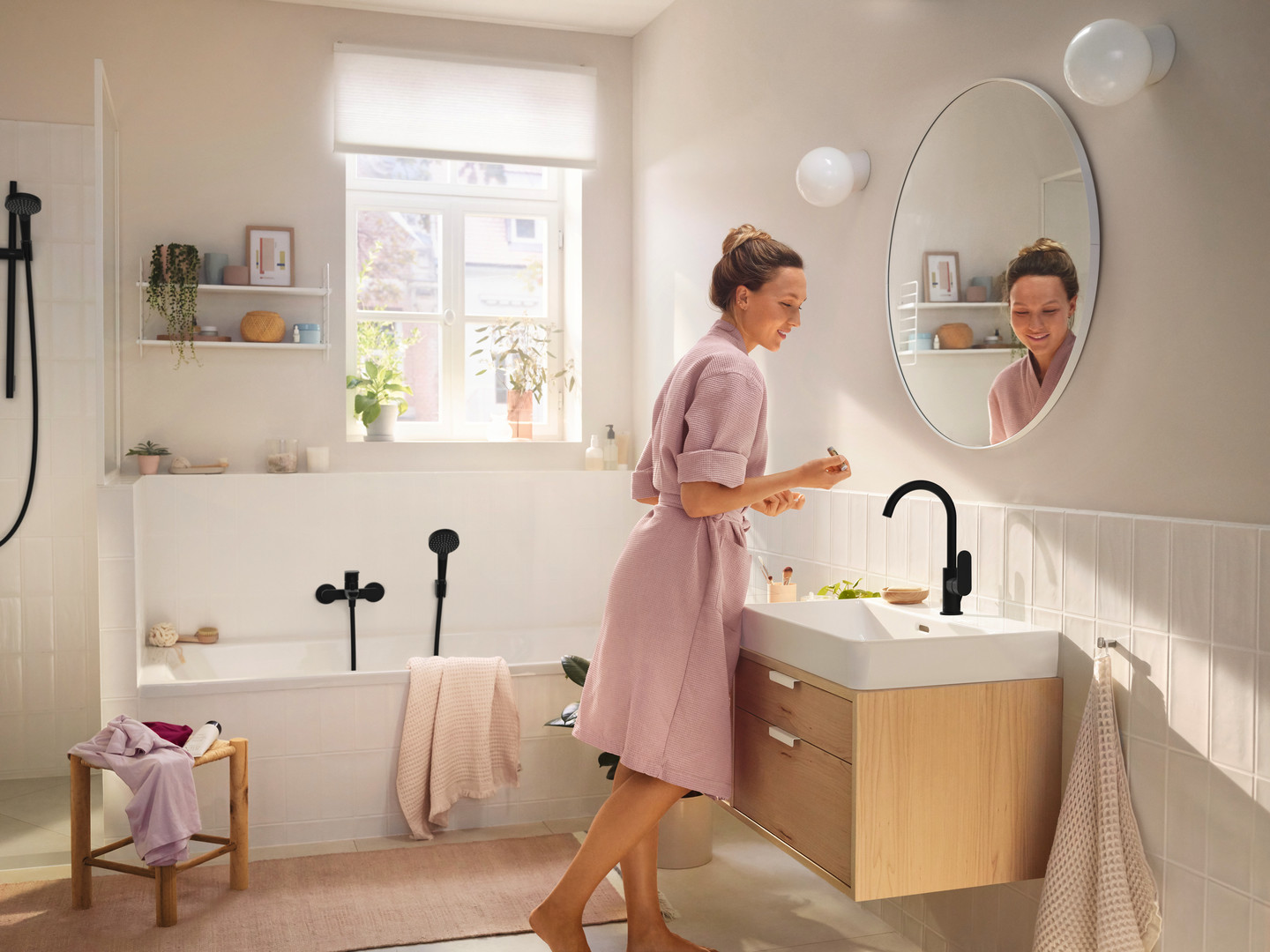 hansgrohe Waschtisch-Einhebelmischer Rebris S 210 mit Schwenkauslauf, Zugstangen-Ablaufgarnitur, mattschwarz