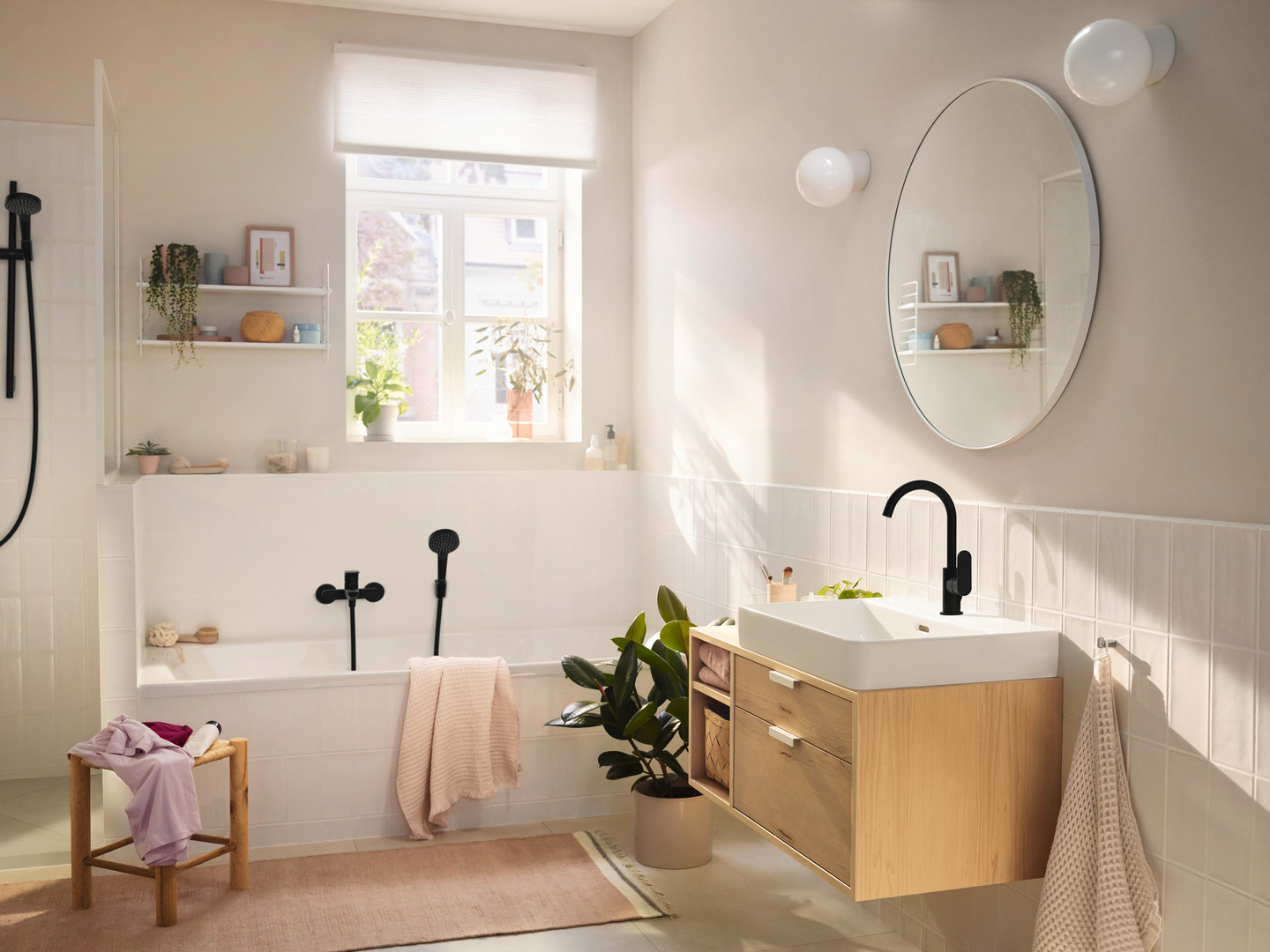 ComfortZone 210, Ausladung 154 mm, Auslaufhöhe 222 mm, Schwenkbereich 120°, Normalstrahl, max. Durchflussmenge bei 3 bar 5 l/min, Keramikmischsystem, Temperaturbegrenzung einstellbar, für Durchlauferhitzer geeignet, Zugstangen-Ablaufgarnitur G 1 1/4, Ablaufventil Synthetik, Anschlussart G 3/8 Anschlussschläuche, Anschlussgröße DN 15, EcoSmart, AirPower Technologie
