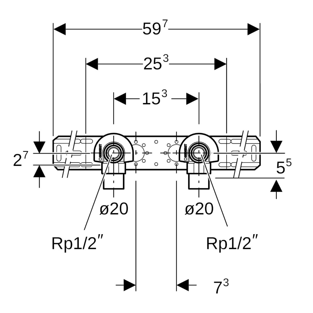 Geberit Anschlusswinkel Mepla Ø 20 mm x Rp 1/2 x 52 mm, 90°, zweifach, vormontiert, Rotguss