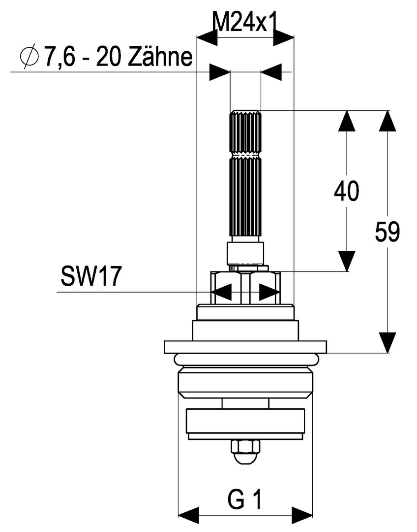 Schulte UP-Ventil-Innenoberteil 1", mit verlängerter Verzahnung, ohne Chromteile