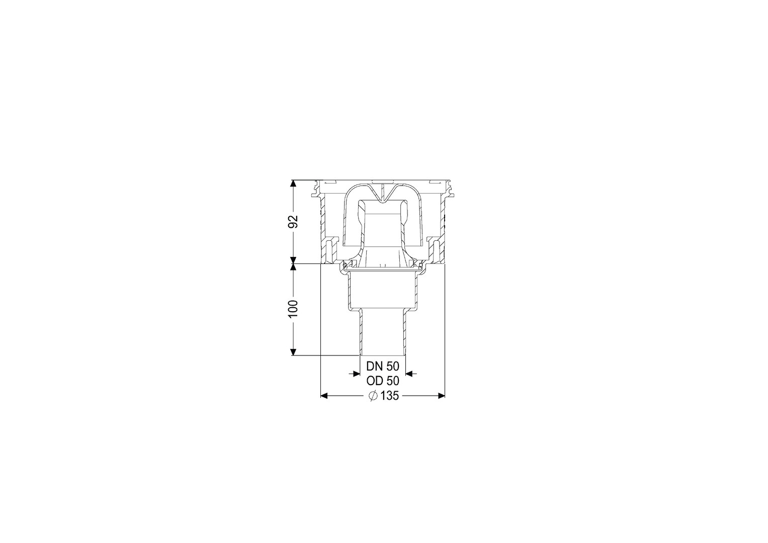 Kessel Bodenablauf-Grundkörper Practicus DN/DA 50/50, Höhe 100 mm, Ablauf senkrecht, mit Anschlussrand