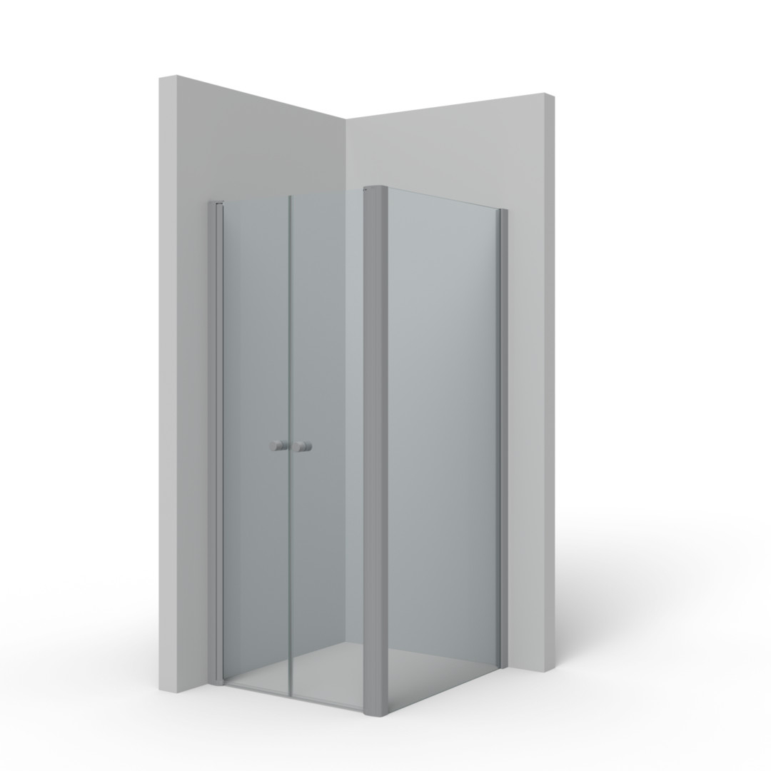 Palme Pendeltür mit Seitenteil Top Drive 08 98,5 x 200 cm, ESG transparent, alusilber, 2-teilig