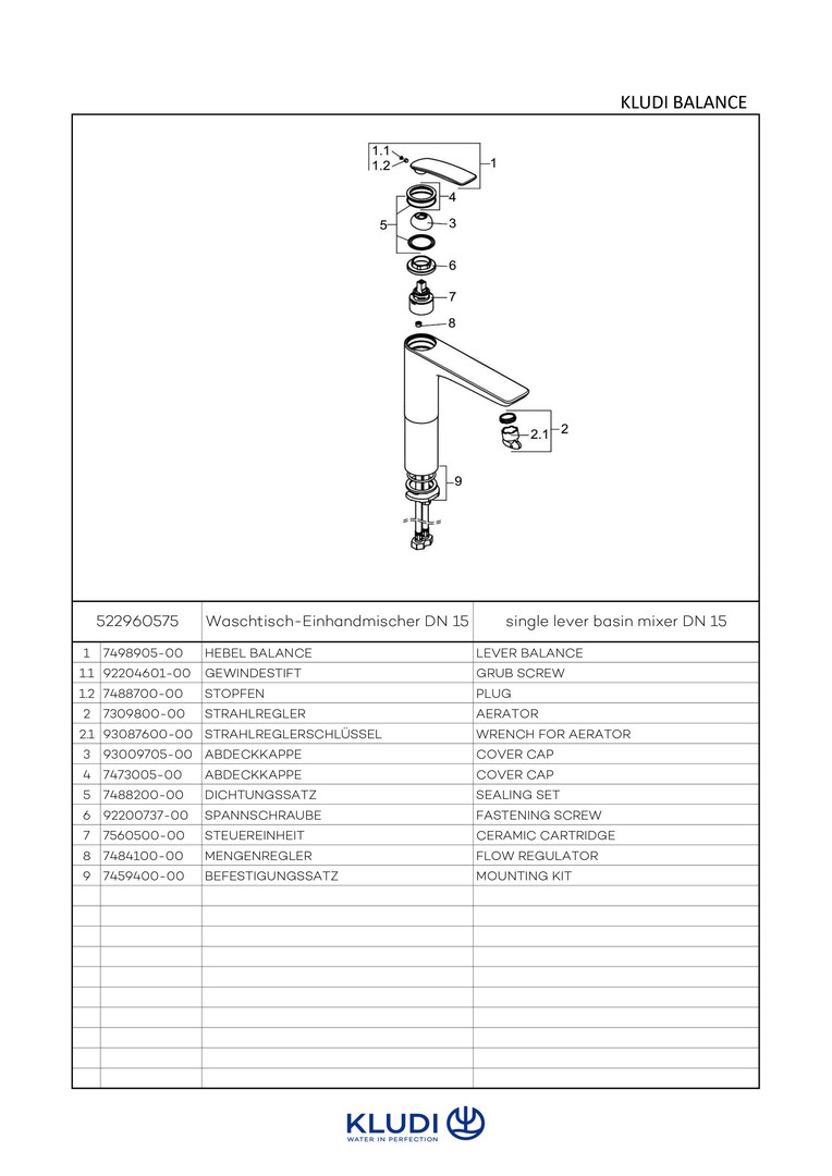 KLUDI Balance Waschschüssel-Einhebelmischer ohne Ablaufgarnitur, chrom W325018