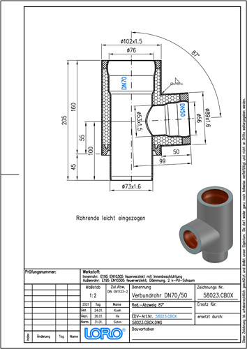 LORO Verbundrohr-Reduzier-Abzweig DN 70/50, 87°