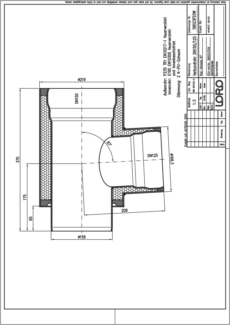LORO Verbundrohr-Reduzier-Abzweig DN 150/125, 87°