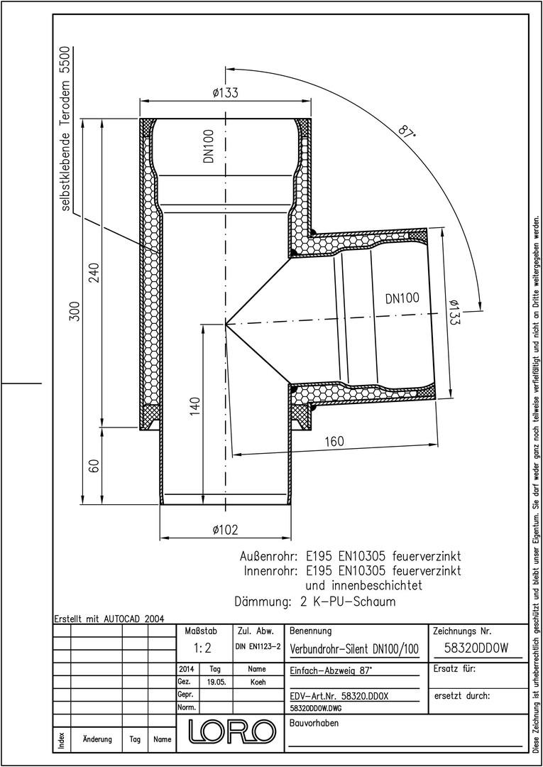 LORO Verbundrohr-Abzweig SILENT DN 100, 87°