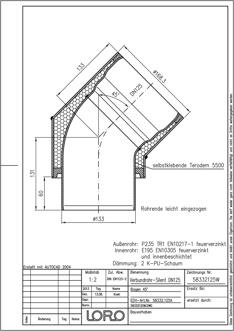LORO Verbundrohr-Bogen SILENT DN 125, 45°