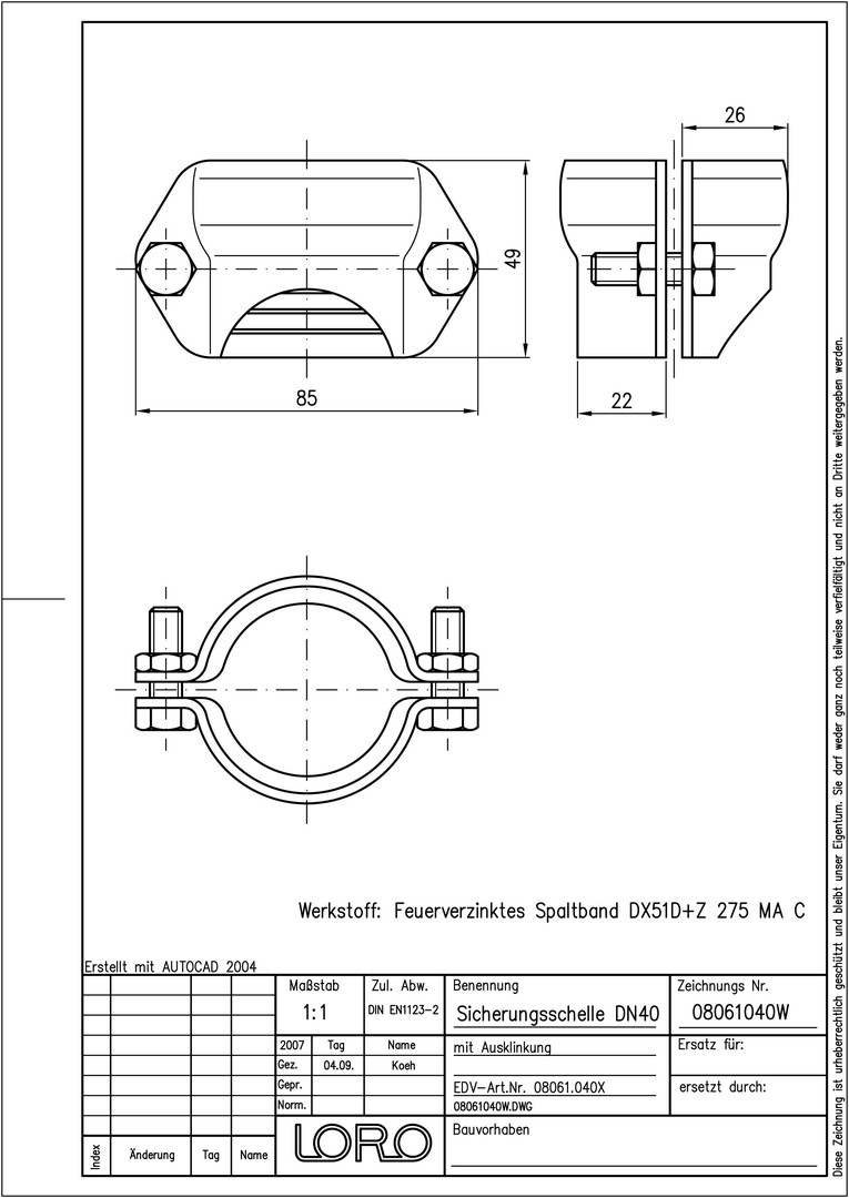 LORO X Sicherungsschelle DN 40, mit Ausklinkung für Verbindung Rohr/Abzweig W553606