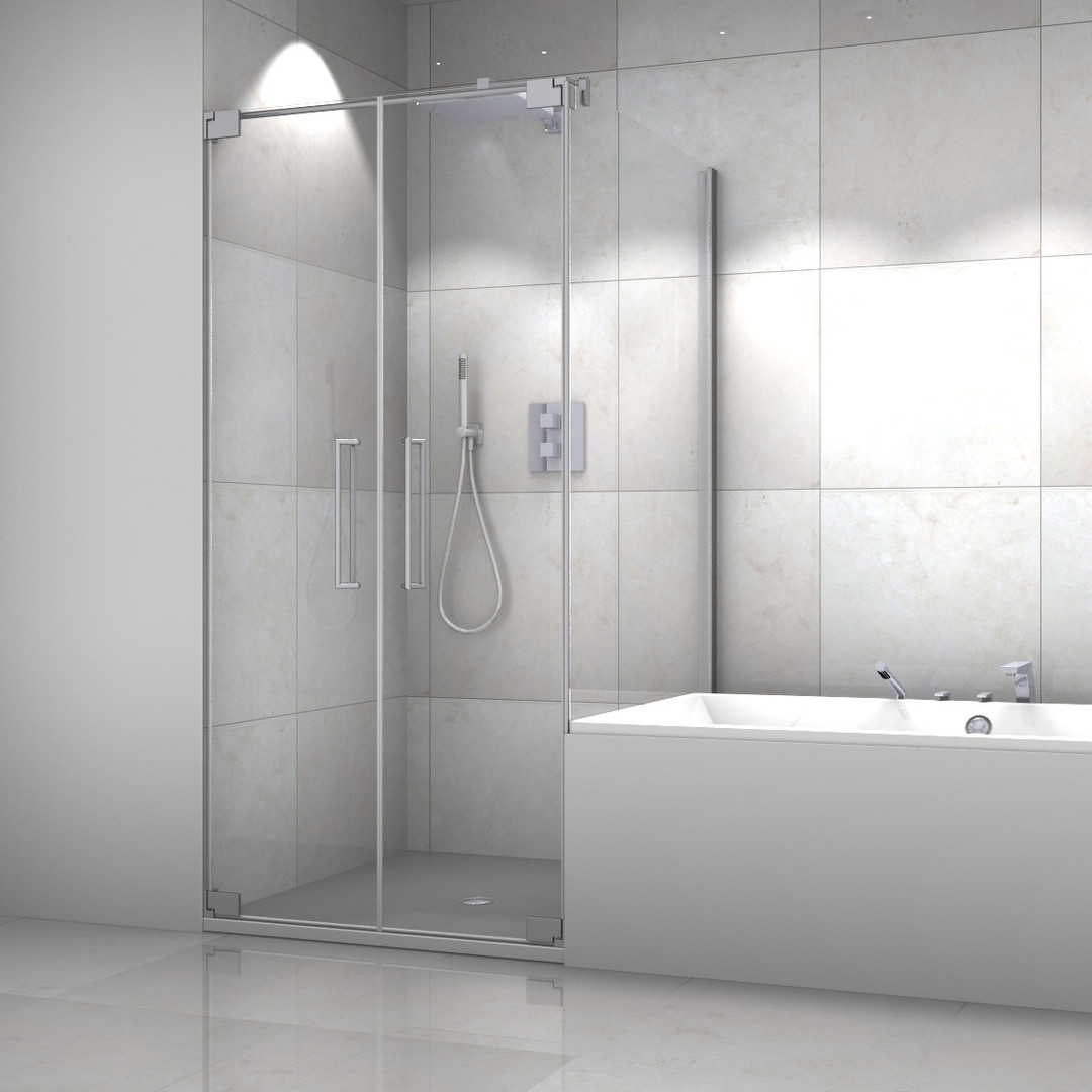 Palme Seitenteil Avito Vario verkürzt 118,5 x bis 200 cm, rechts, AK ESG transparent, alusilber, auf Badewanne