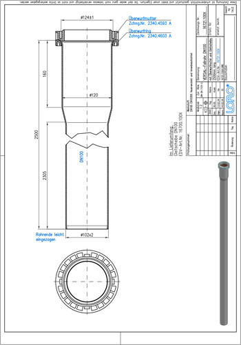 LORO Fallrohr DN 100, 2500 mm, mit Überwurfmutter und Gleitscheibe W558322